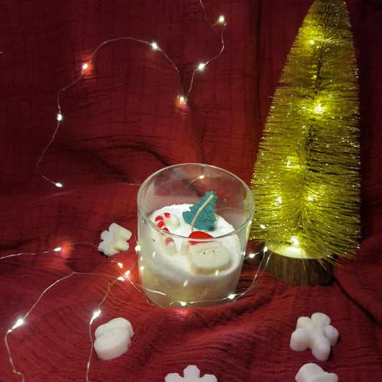 Christmas Candle with Snowy Sand Wax and Festive Wax Toppers